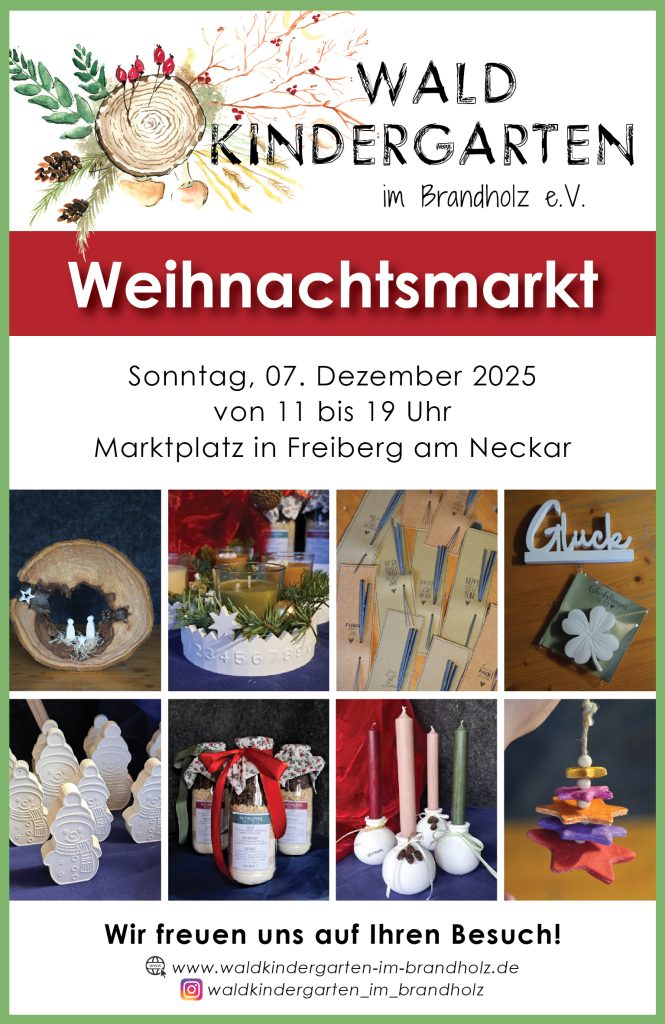 Der Waldkindergarten lädt herzlich dazu ein, den Stand auf dem Weihnachtsmarkt zu besuchen und sich inspirieren zu lassen, sei es für ein kleines Geschenk, eine besondere Dekoration oder für nette Gespräche.
